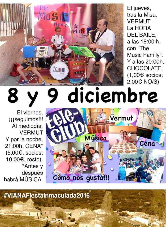 Llega el Puente de Diciembre, y es Fiesta en Viana de Jadraque. #VIANAFiestaInmaculada2016, Fiesta en Honor a nuestra Patrona, la Inmaculada Concepción (8 de diciembre).
