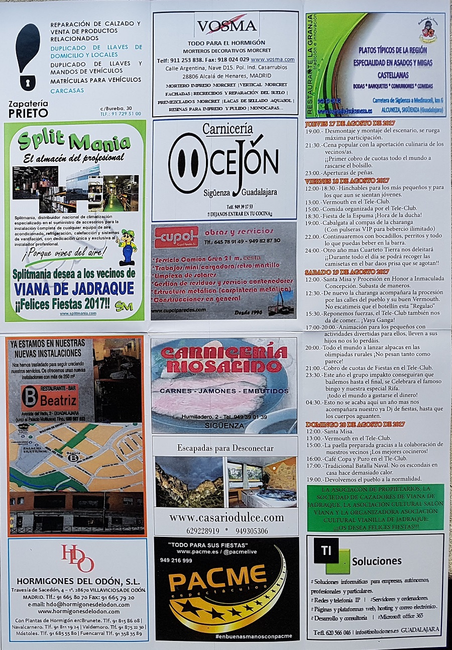 La Comisión de Fiestas de Viana de Jadraque, organizadora de las Fiestas Patronales de verano, nos facilita el programa de fiestas de este verano.