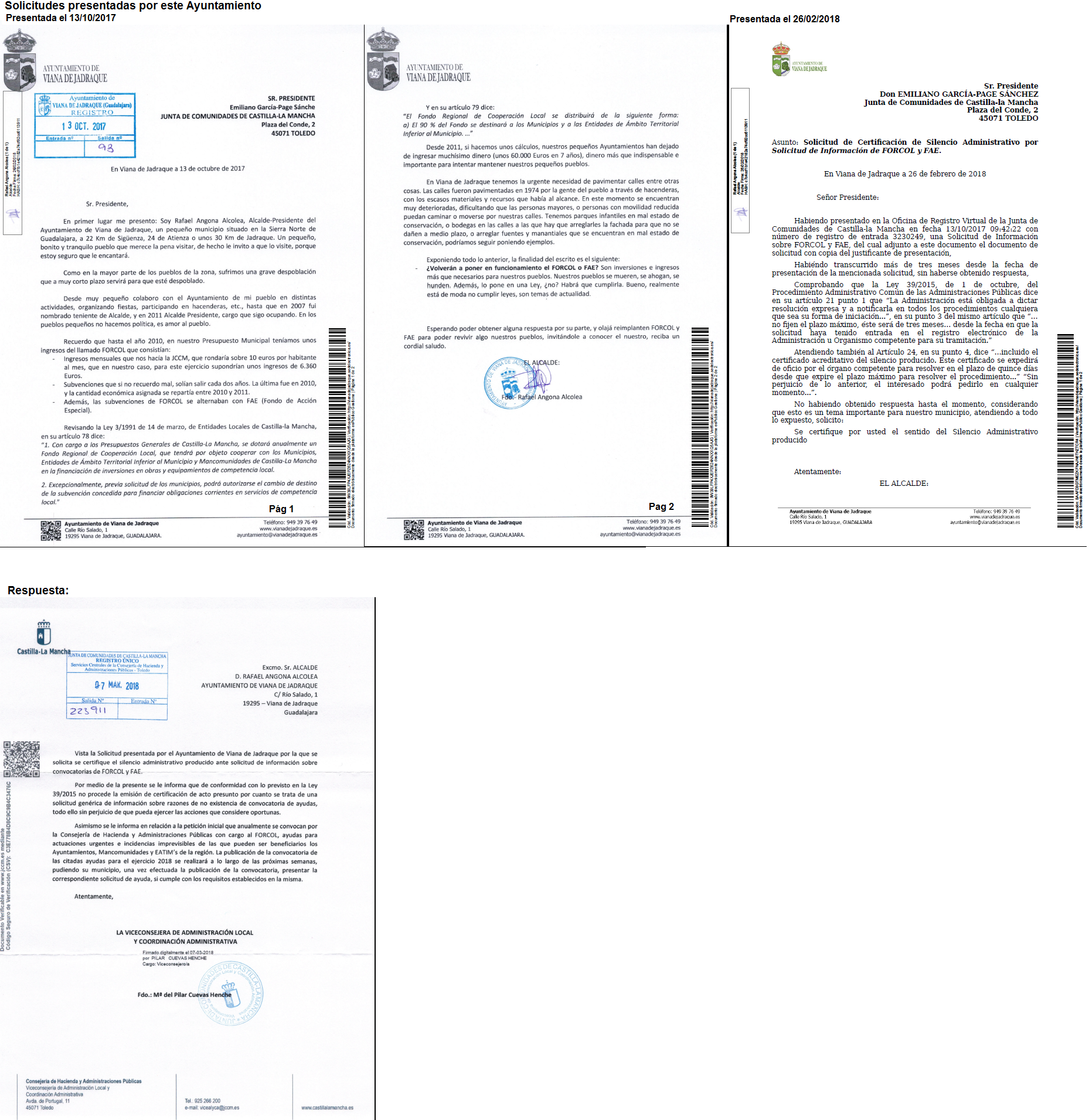 Os dejo a continuación las cartas (Si pinchas en la imagen, se ven en grande). Por cierto, la crítica no es por el dinero, sino por los detalles de los Silencios Administrativos, es decir, por el detalle de no contestar, de no sacar ni 5 minutos para contestar a un Ayuntamiento, por muy pequeño que sea. Como Ayuntamiento, alguna explicación tenemos que dar de el porqué no se puede hacer más. Merecemos respuestas, soluciones, que aunque seamos un muy pequeño pueblo de Guadalajara, somos también, por mucho que nos duela, un pueblo de Castilla-la Mancha.