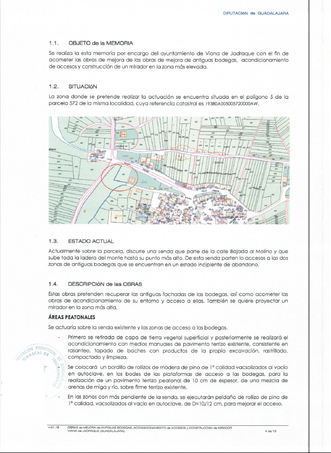 En esta legislatura existía un proyecto de OBRAS DE MEJORA DE ANTIGUAS BODEGAS, ACONDICIONAMIENTO DE ACCESOS Y CONSTRUCCIÓN DE MIRADOR que consistían en arreglar el acceso, fachadas y puertas de las bodegas que se encuentran a pie de El Cantero, a la entrada del pueblo, de tal forma que sirviesen para cuidar el patrimonio del pueblo, nuestras famosas bodegas (o cuevas cavadas en las calles como dicen algunos), además de dar un aspecto de acceso al pueblo más cuidado y ser capaces de enamorar al visitante o al turista, de tal forma que se pudiese visitar alguna de las bodegas que tienen claras muestras de abandono.