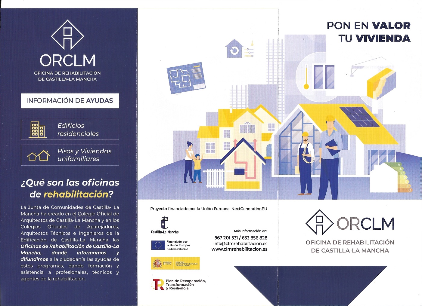 La Junta de Comunidades de Castilla-la Mancha, el Colegio Oficial de Arquitectos de Castilla-la Mancha y el Consejo de Colegios Oficiales de Aparejadores, Arquitectos Técnicos e Ingenieros de Edificación de Castilla-la Mancha forman la Oficina de Rehabilitación de Castilla-la Mancha.
