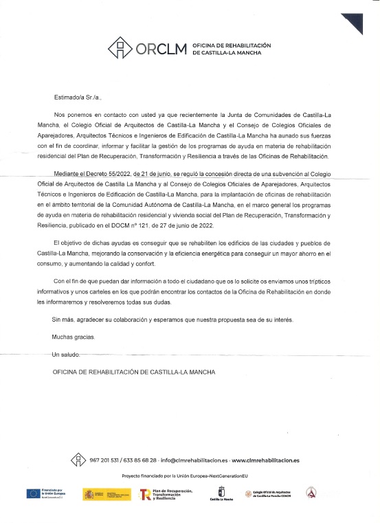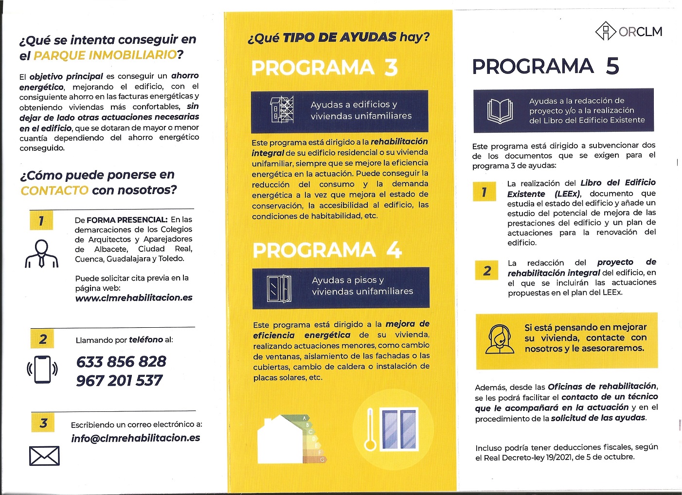 A continuación dejamos el cartel y la carta que se ha enviado desde la Oficina de Rehabilitación de Castilla-la Mancha a este Ayuntamiento, al igual que un tríptico escaneado. Puedes pinchar en las imágenes para verlas más grandes.