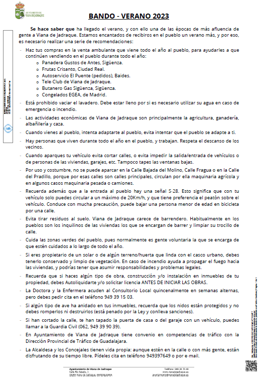 Pronto os recibiremos en Viana con los brazos abiertos. Y por eso desde el Ayuntamiento hemos elaborado un Bando con recomendaciones para la convivencia de este verano.