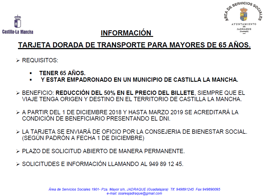 Los requisitos: tener más de 65 años y estar empadronado en un municipio de Castilla-la Mancha. Beneficio: descuento del 50% en autobuses con origen y destino en localidades de la región.