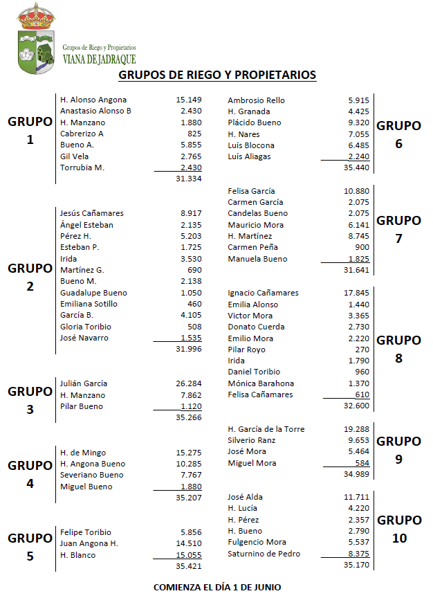Lo colgamos a continuación por si te has animado a montar un huerto, para que sepas cuando te toca el agua para regar. Te lo colgamos en la APP "Viana de Jadraque Informa" para que lo descargues en tu móvil.