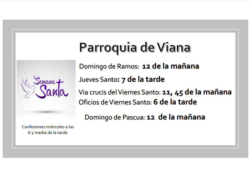 El Párroco, don Rafael Amo, como viene siendo costumbre, nos envía los horarios de actos religiosos y procesiones de Viana de Jadraque para esta Semana Santa de 2024.
