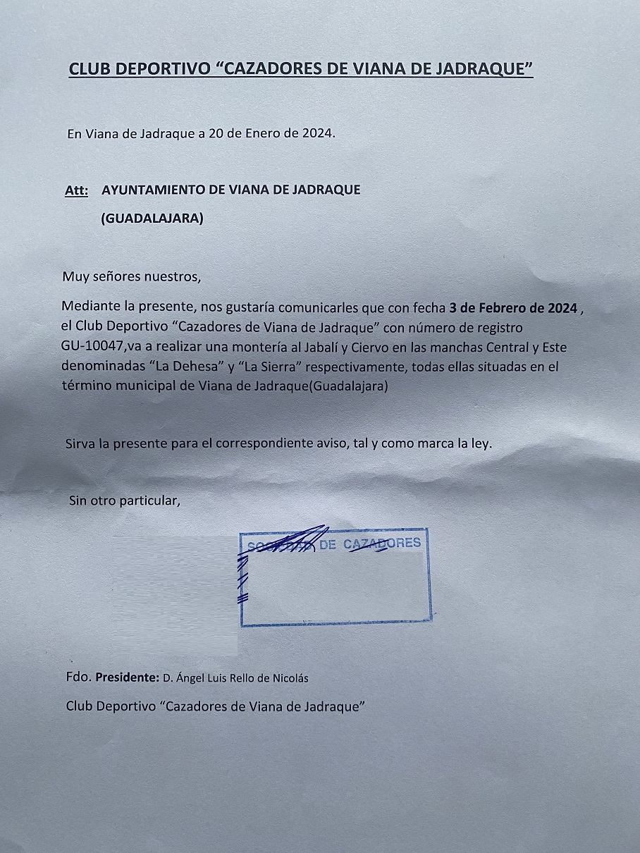 La Sociedad de Cazadores de Viana de Jadraque nos informa que el próximo día sábado 3 de febrero de 2024, va a realizar una Montería de Jabalí y Ciervo en el pueblo en las zonas Sierra y Mancha.