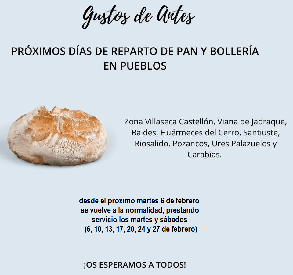 Gustos de Antes - Churrería Irene nos informa de los próximos días de ventas de pan en el mes de febrero.
